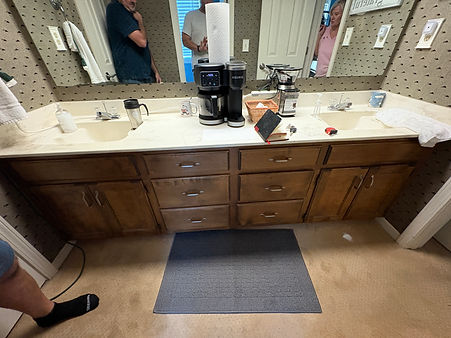 Client ordered new counter top. We removed all the existing doors and made new custom shaker style doors and drawers. Custom paint job, new fixtures, new faucets. It's like a new bathroom!